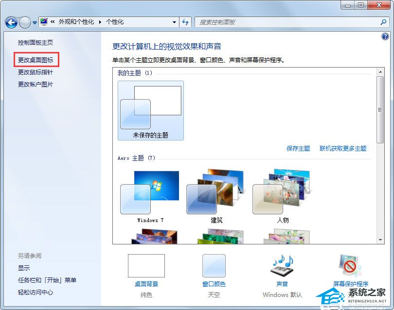 2、点击更改桌面图标也能来到桌面图标设置里,方法就和第一种一样。
